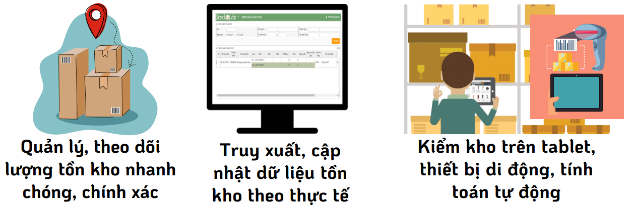 ♦ Bằng việc sử dụng mã QR 2 chiều, giúp việc quản lý nhập, xuất hàng trở nên dễ dàng hơn.