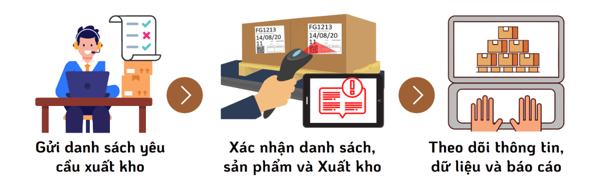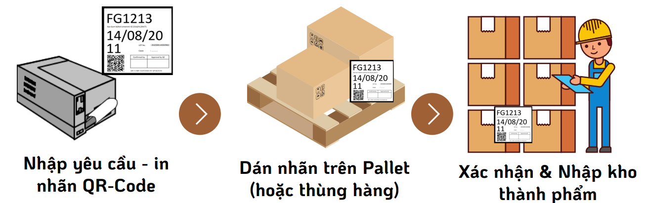 - Xác nhận chính xác thành phẩm bằng mã vạch 2 chiều (QR-Code). Tự động tính toán lượng tồn kho.